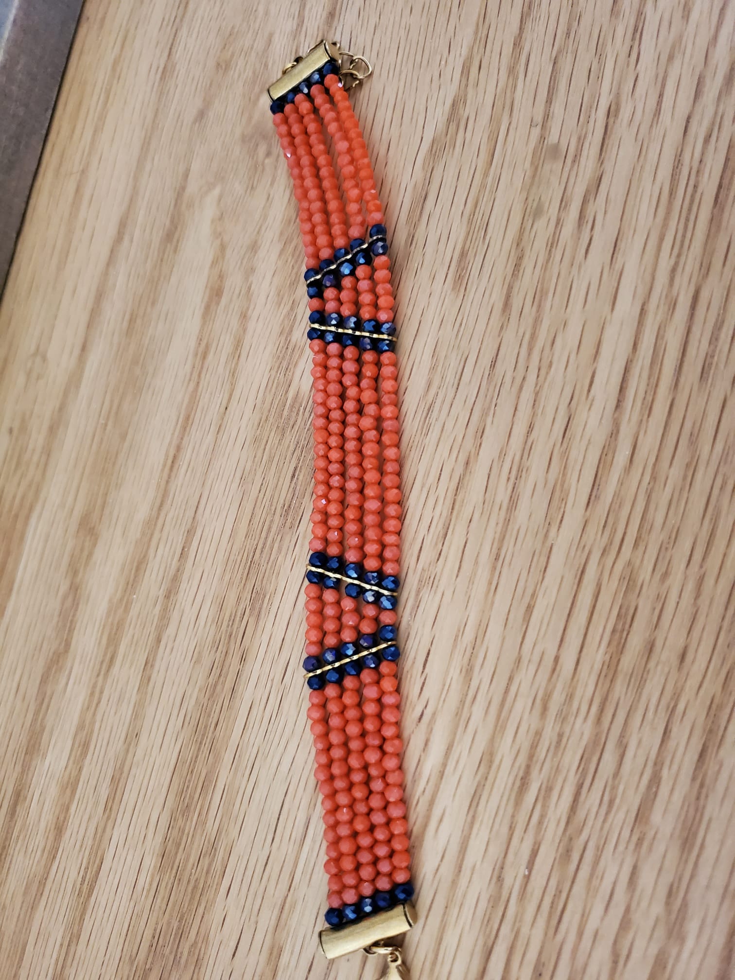 .SUMAK Bracelet - 5 Strand in Dark Coral with Dark Blue Accents