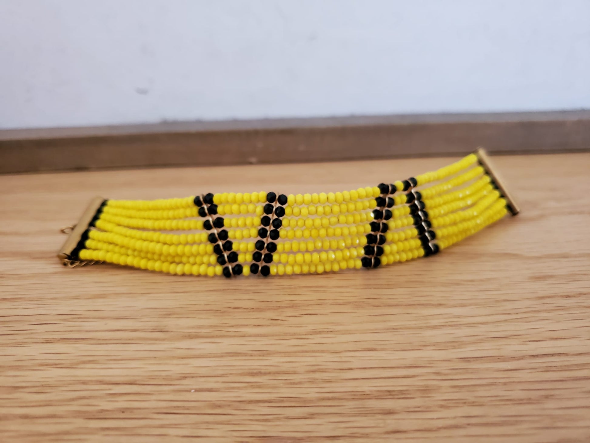.SUMAK Bracelet - 7 Strand with Yellow & Black Beads