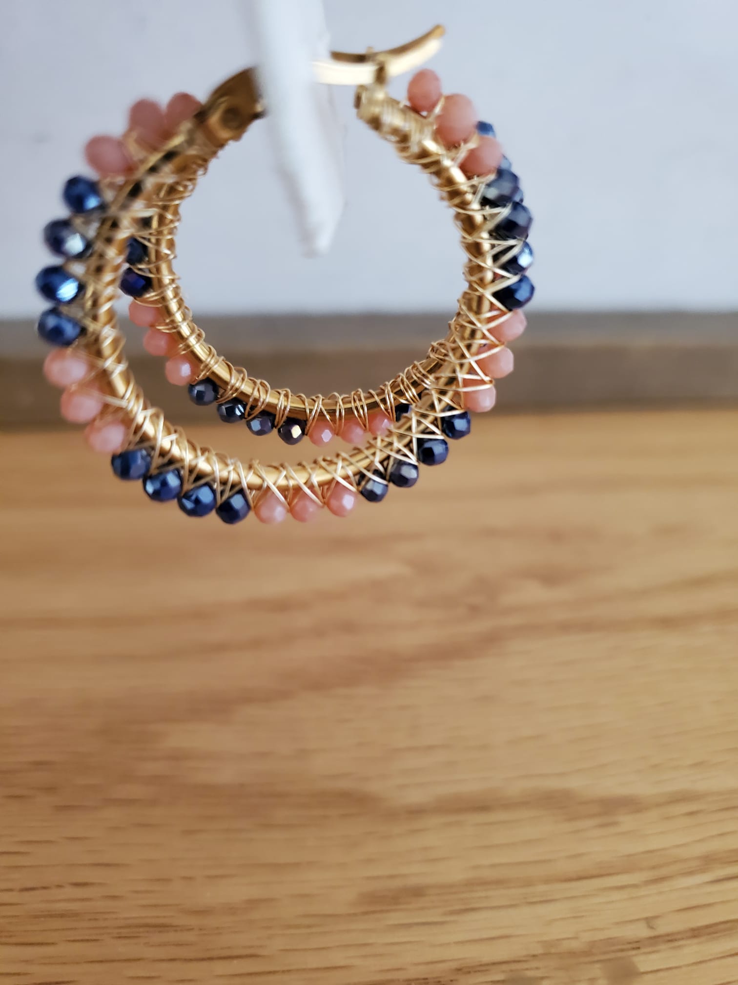 .SUMAK Earrings - Large Hoop Dark Blue with Pale Pink